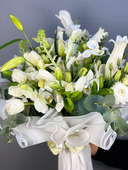 Deluxe Vazo İçinde Beyaz Işıltı Orkide Aranjman