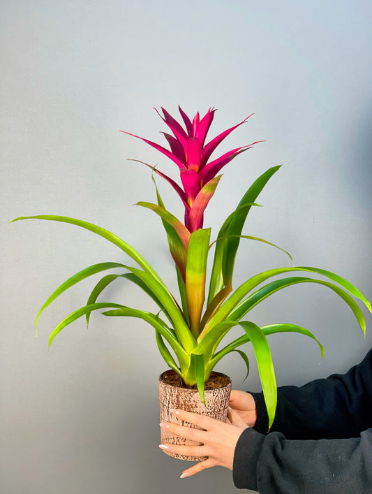 Minimal Eskitme Seramikte Fuşya Guzmania
