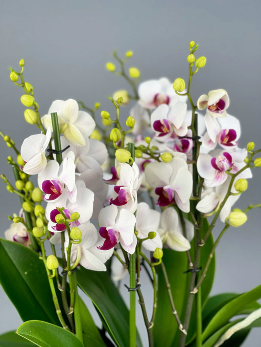 Deluxe Siyah Cam Vazoda Mor Alacalı Beyaz Bellissimo Orkide